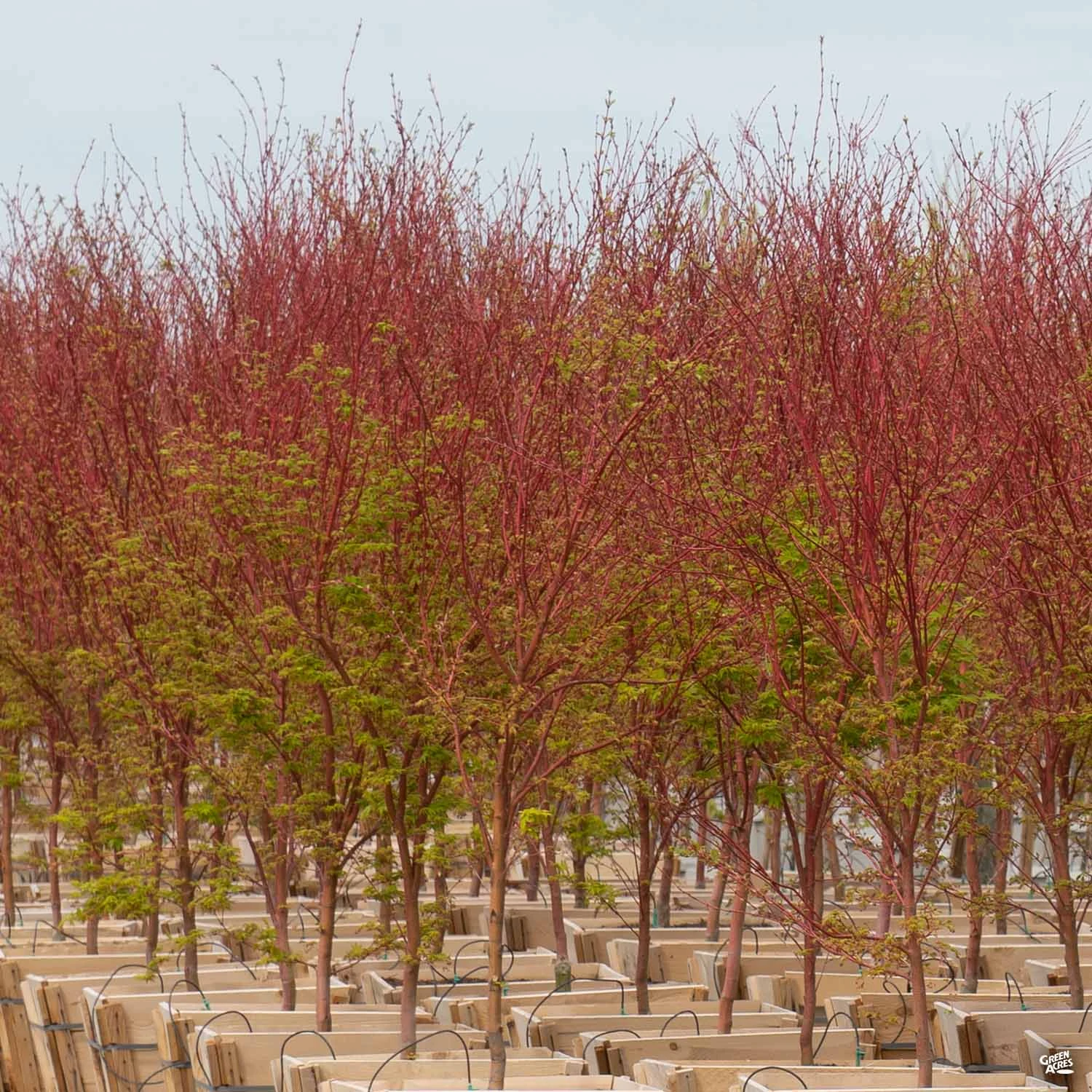 Deciduous accent tree with an upright, vase-shaped crown. Bright green foliage turns golden-yellow in fall. In winter, the scarlet colored bark provides year-round interest.