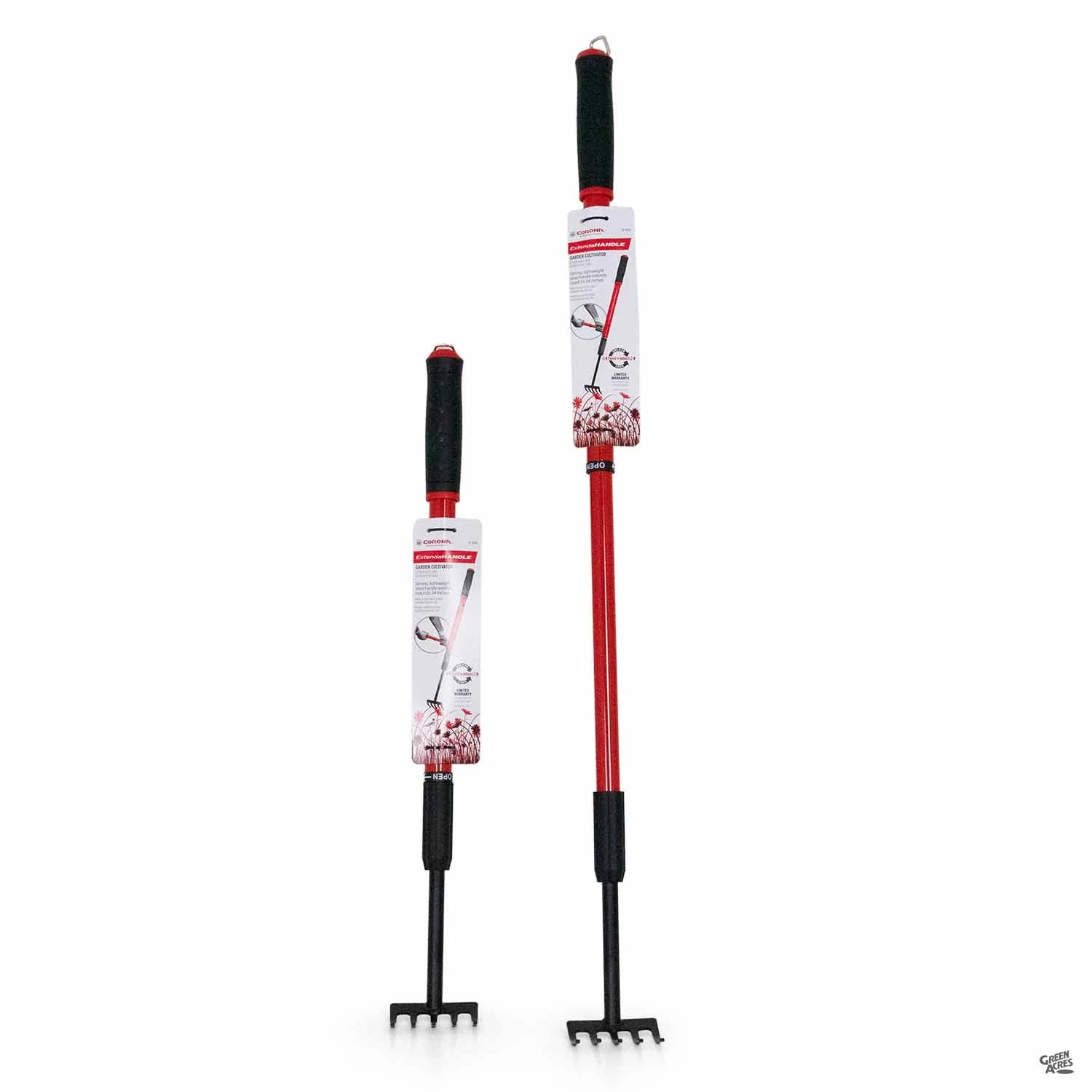 Extendable garden tool with strong, lightweight steel handle and a claw style end.