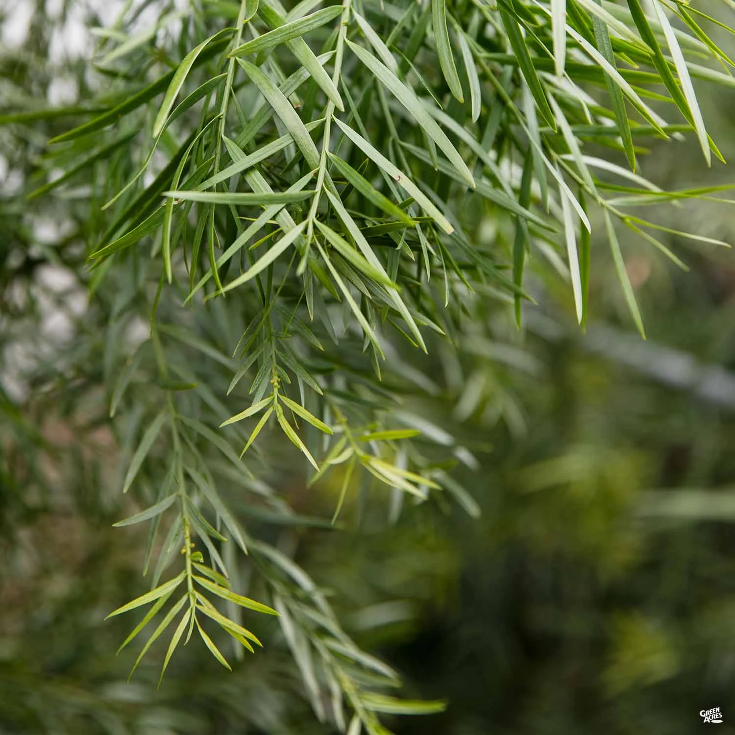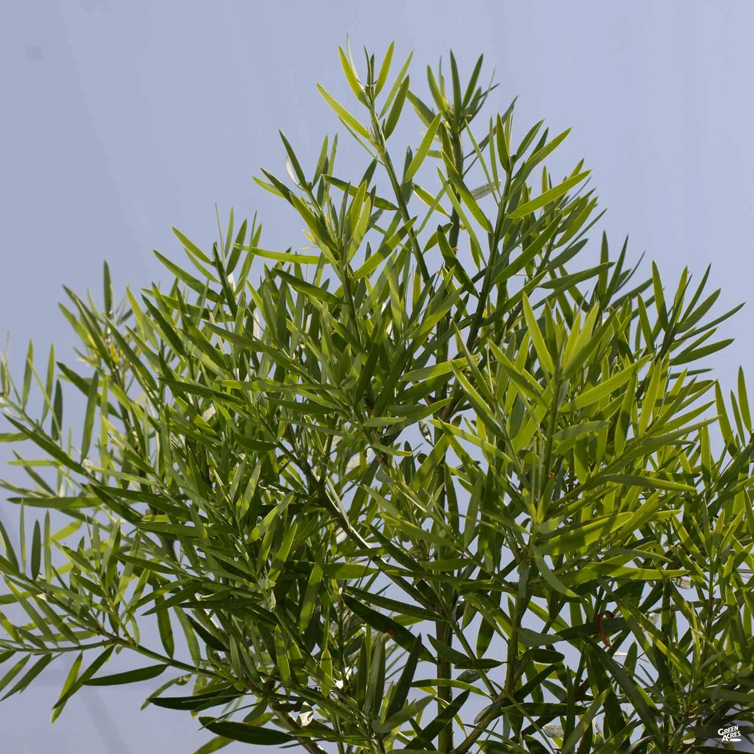 Evergreen tree or shrub has narrow leaves that emerge shiny dark green, maturing to blue-gray. Utilize upright, rounded habit as container plant, espalier, screen, accent or windbreak.