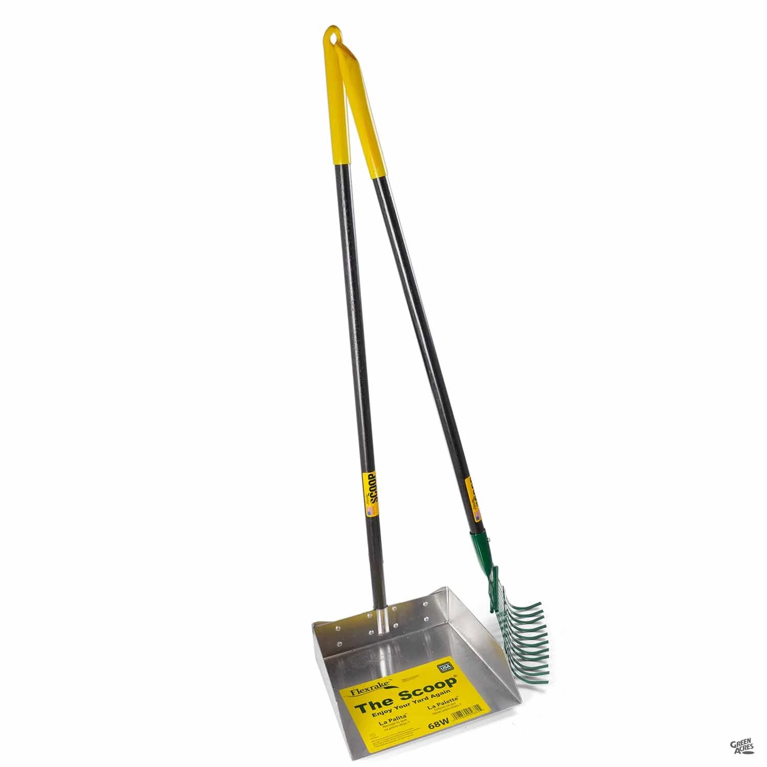 Two piece set includes 10″ scoop pan and rake. Wooden handles feature a cushion grip.