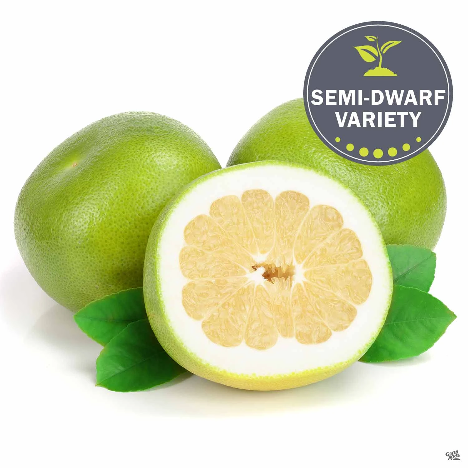 Evergreen, semi-dwarf citrus with large, fragrant flowers and attractive glossy foliage. Pale yellow, seedless grapefruits ripen in spring. Sweet pulp lacks bitterness.