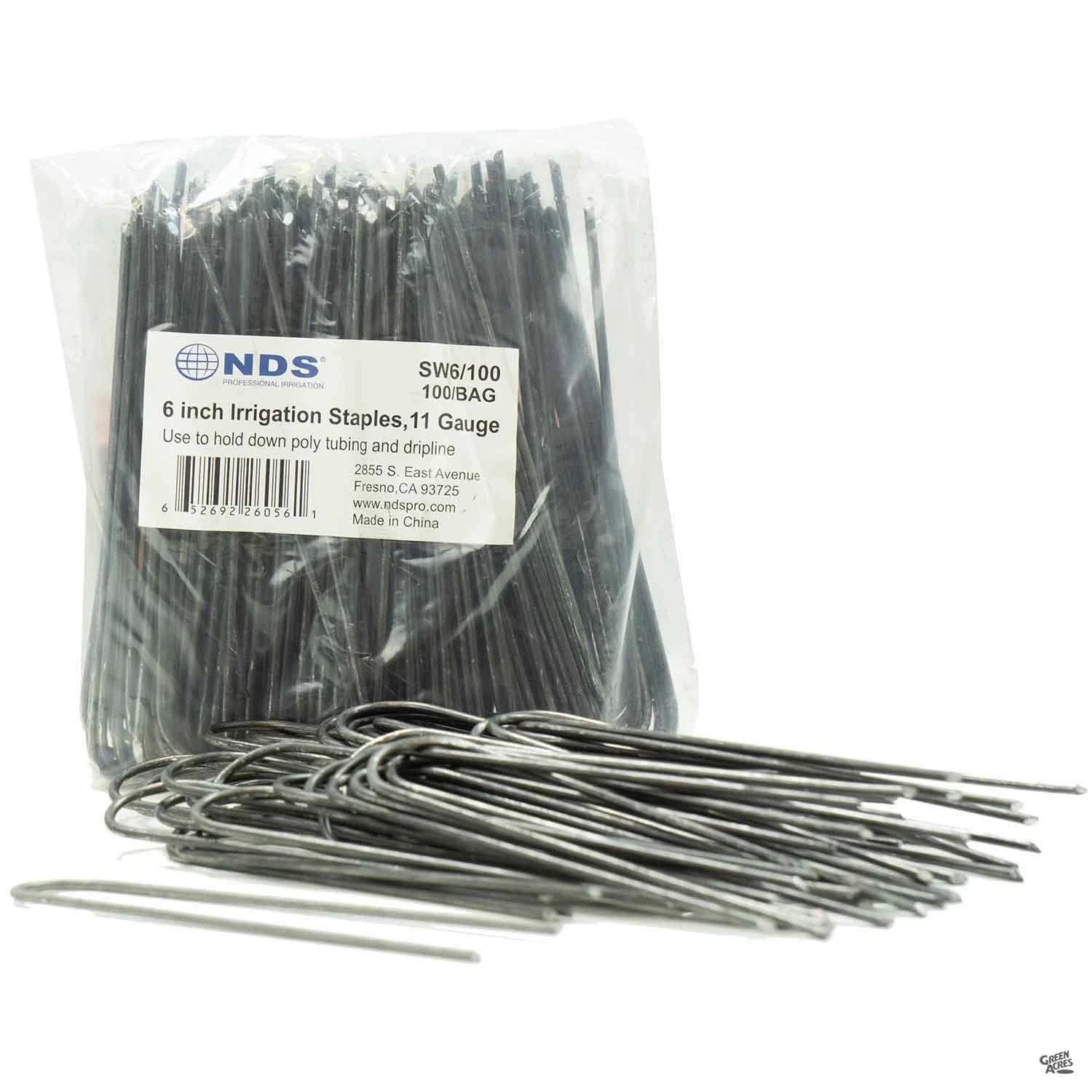 Secure weed fabric, frost cloth, poly tubing and dripline utilizing these staples.