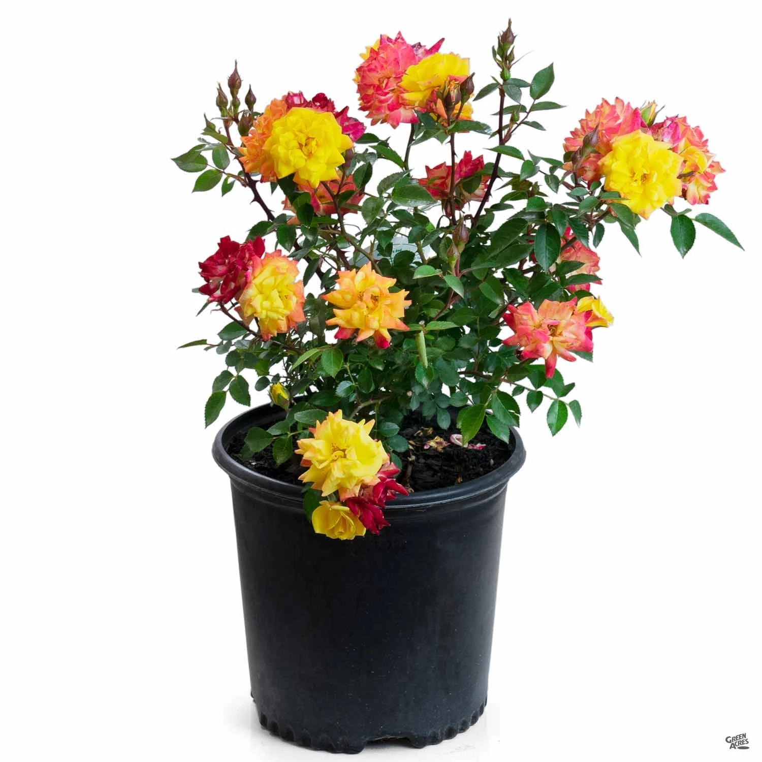 Dark yellow flowers with orange-red tips bloom repeatedly spring through fall. Fade-resistant petals. Great as a container plant, landscape accent or border plant.