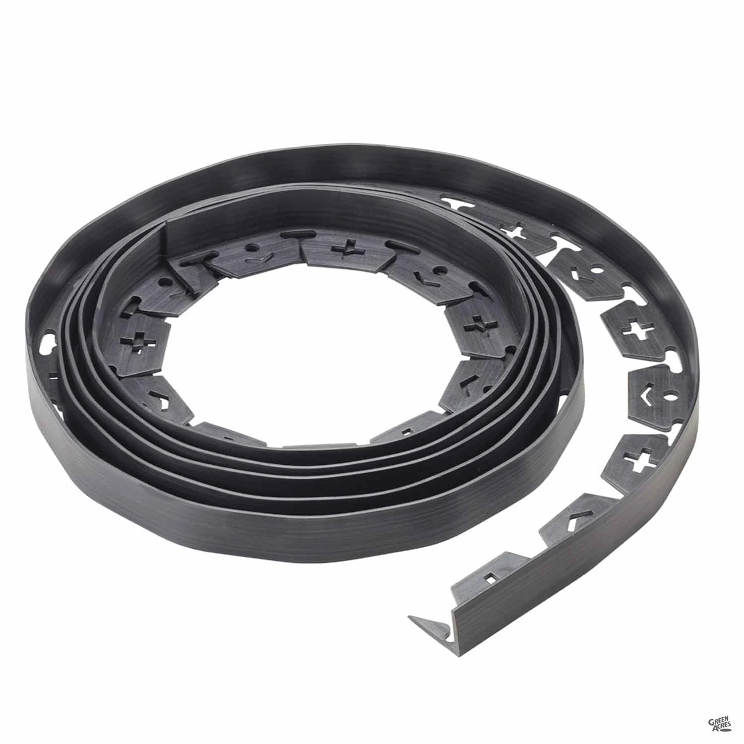 Innovative design creates dependable edging without needing to dig. Simply line edging with anchor nail tabs facing inwards and nail into place then fill with soil, bark, or mulch. Use around flower beds, trees, or turf.