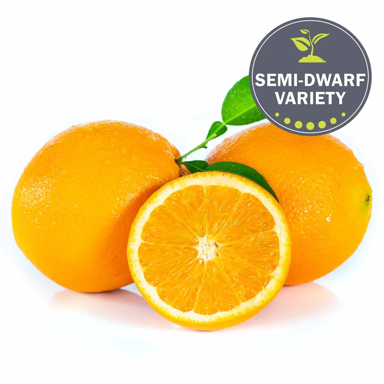 Evergreen citrus with glossy, bright green foliage. Semi-dwarf tree produces large, seedless oranges that mature mid summer. Very juicy, sweet fruit is considered one of the best varieties of oranges for juicing.