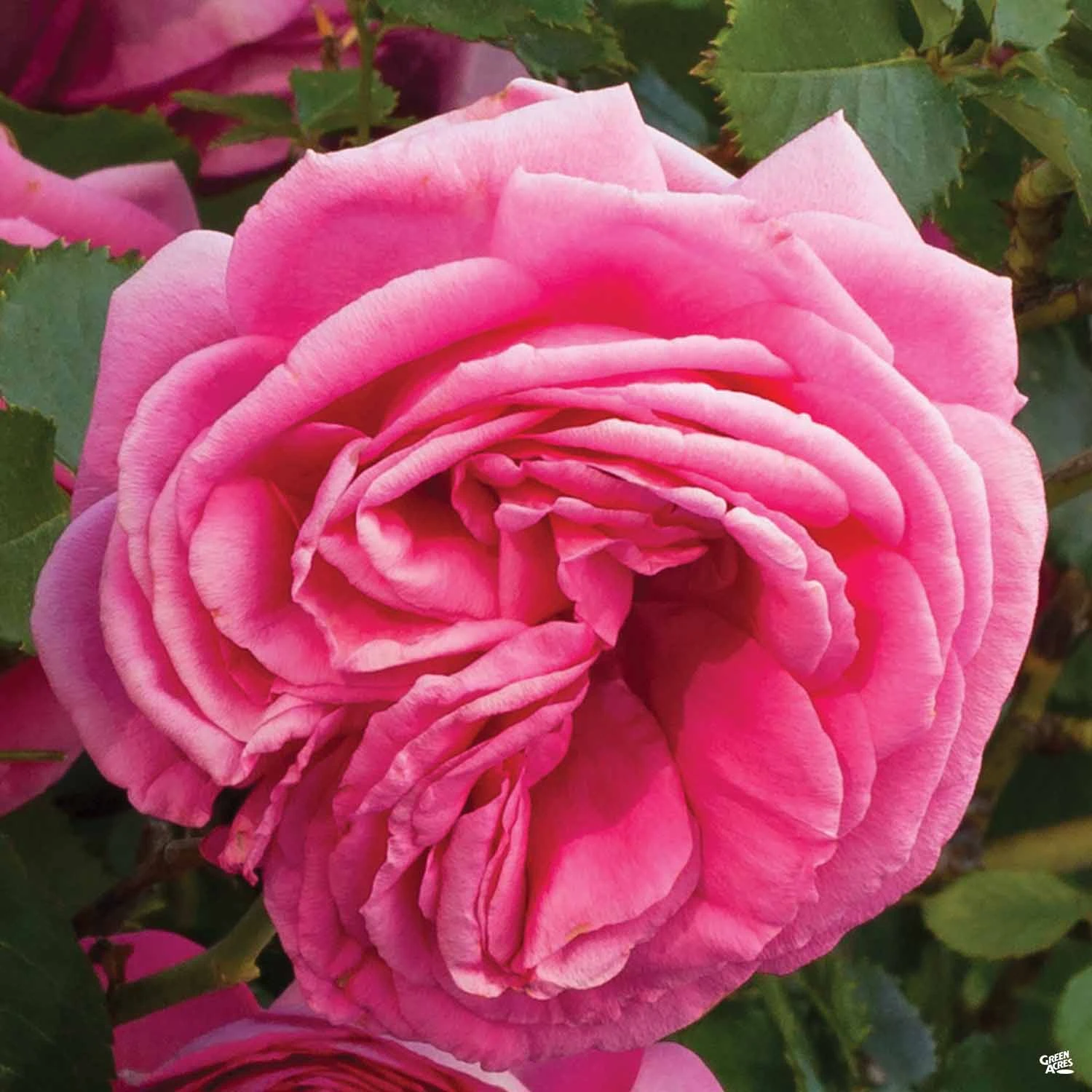Very large, hot pink roses with 70-80+ petals, bloom spring through fall. Disease resistant, dark green foliage. Excellent as an accent or border plant.