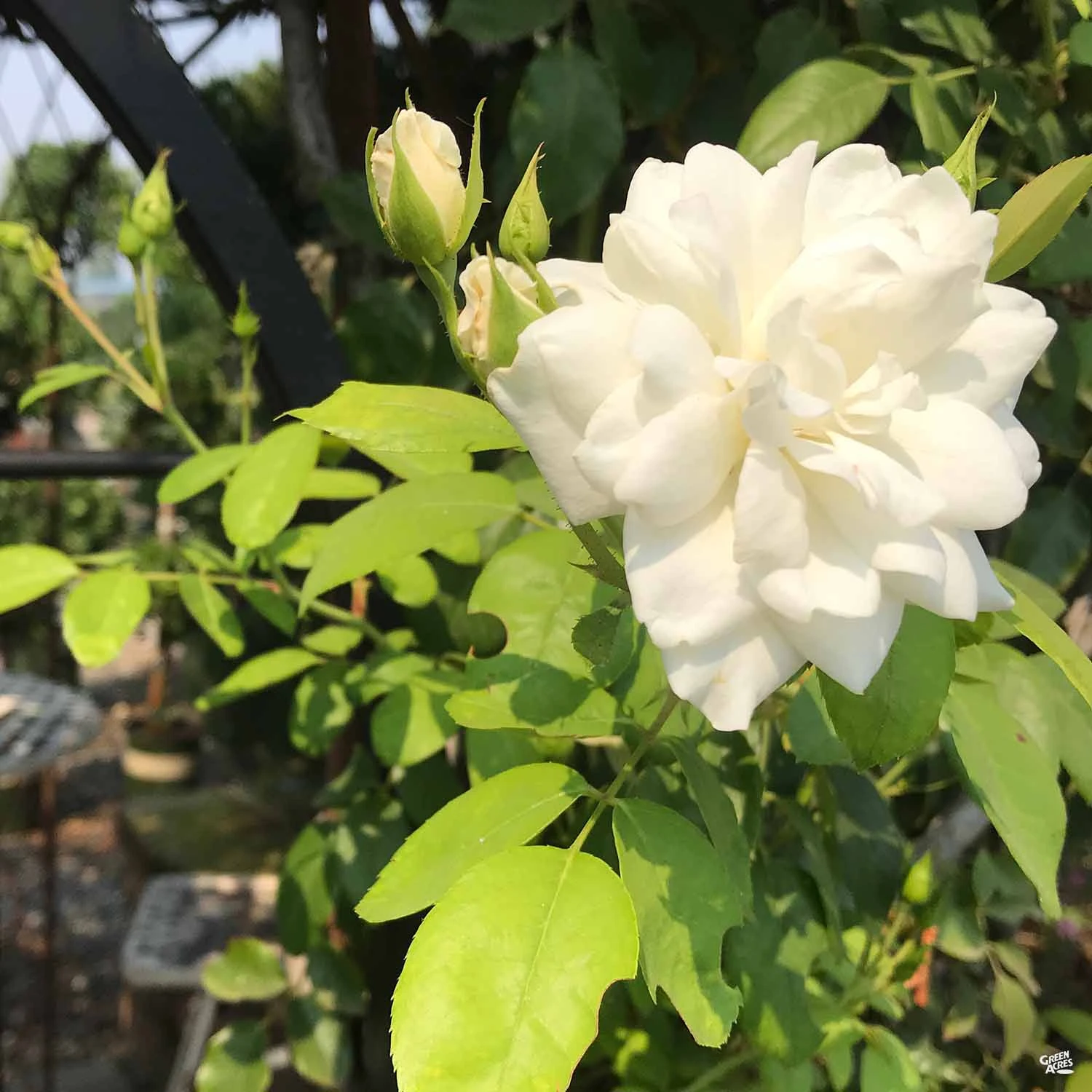 Crisp, white flowers bloom in abundance from spring to winter. Deciduous shrub grows in a dense, rounded habit. Extremely disease resistant. Plant in a container, border or as an accent.