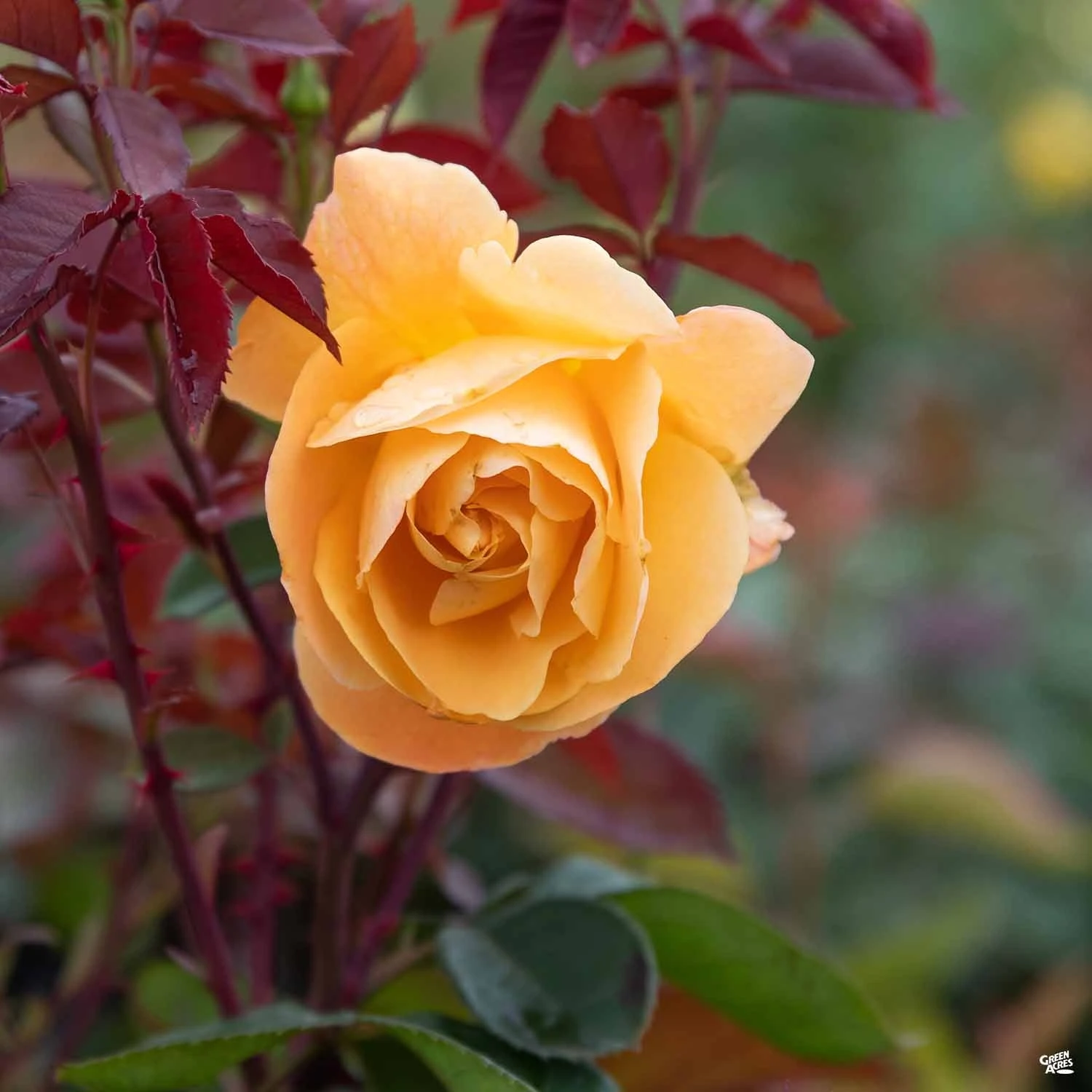 Large, golden-yellow, petals have light red blushing ends. Blooms spring through fall on red stems. Spicy-sweet fragrance. Great container plant, landscape accent or border plant.