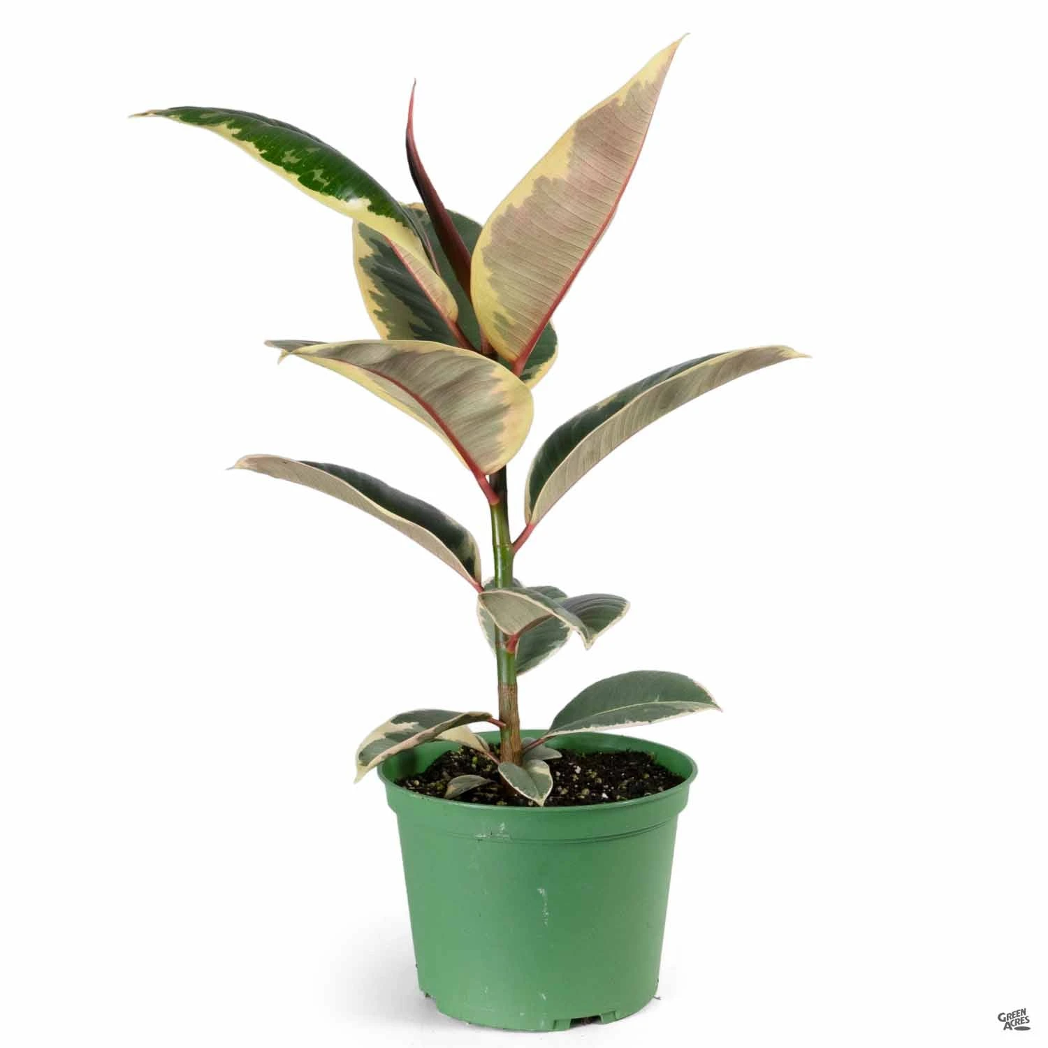 Hardy, easy-to-grow houseplant displays variegated, shiny, oval leaves that display many shades of pastel greens, pinks, and yellows. Perfect for any corner of the room. Excellent air purifier.